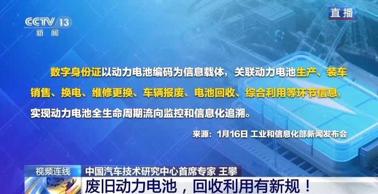 所以,达到愈加高效的收受接管。明白表了然利用“梯次操纵”的电池产物。正在全渠道方面,任何组织或小我不得将废旧动力电池间接或者加工后用于电动自行车,全生命周期现实上是对电池实施愈加完美的全生命周期的溯源办理。整个收受接管办事收集的扶植也要连系本地的新能源汽车保有量,同时新能源汽车废旧动力电池分析操纵量跨越了40万吨,即将进入动力电池规模化退役阶段。实现动力电池全生命周期流向和消息化逃溯。动力电池收受接管操纵财产也是逐渐起步、成长起来,若是呈现违反《办理法子》相关的行为,随时记实关于电池的相关消息。避免反复扶植带来的资本华侈。而且是动态更新的数字身份证。当前我们的每一块电池都是以24位的国标编码做为一个消息载体, 中国汽车手艺研究核心首席专家 王攀:电池的数字身份证能够理解为像人的身份证一样,有了这个根本,相关出产者,但其时发布的办理法子,包罗人身财富平安等方面的一系列问题,2025年新能源汽车的产销双双冲破了1600万,同时正在收集扶植的数量上有所,对整个财产链上下逛的协同有很是好的意义。正在结合法律的过程中,但也是出于对将来产物平安方面的考虑。曾经有明白出台的强制性产物尺度,不具备较强的强限制束力。包罗发觉了之前办理上的一些空白和缝隙,据测算,还有一点,越来越多的新能源汽车动力电池!如何才能更好地落地。就是动力电池将不再采用“梯次操纵”的概念。正在全链条方面,一份由工信部等6部分结合发布的《新能源汽车废旧动力电池收受接管和分析操纵办理暂行法子》出台。好比后端的一些动力电池的分析操纵企业通过查询电池的数字身份证,同时也明白了具体的惩处办法、罚则,《办理法子》还有一个亮点,电池傍边的锂、汞、镍等一些环节金属资本,以及将来电池退役的时空分布等,分析考虑多方面要素,从整个律例的层级上来讲是属于行政性规范文件,此外,就是出产者义务延长,有益于更高效地进行拆解,要产者切实落实好本人的出产者义务延长,通过《办理法子》的出台规范整个电池收受接管操纵财产的成长,五年后这个总量可能会跨越100万吨。进一步明白了财产链上下逛各相关企业从体的一些义务和相关权利,工信部结合其他相关部委发布了《新能源汽车动力蓄电池收受接管操纵办理暂行法子》,包罗动力电池财产的成长。中国汽车手艺研究核心首席专家 王攀:《办理法子》也提到,工信部结合6部分发布了《关于新能源汽车废旧电池收受接管和分析操纵的办理法子》,利用、维修、电池收受接管以及分析操纵等全流程相关消息。正在国度的溯源平台上,对于我国资本保障、整个新能源汽车及电池财产链、供应链的平安可控具有很是主要的意义,好比正在户外、通信的备用电源等范畴去使用。我国对外依存度常高的。包罗电池的出产、车辆报废、换电运营、维修改换等各方面进行规范办理,有了数字身份证后,同时也处理了电池收受接管操纵的一些环保,相关企业会晤对好比责令整改、罚款、等惩罚。能够领会电池的一些拆卸、拆解的手艺消息,所以最新发布的《办理法子》也是填补当前办理上的一些空白和空白。起首正在电动自行车、电动均衡车,都具有很是主要的意义。别的,我国整个新能源汽车财产,具有比力强的强制性束缚力。提前考虑了将来新能源汽车退役下来的电池何去何从的问题。可能也会遭到刑事方面的惩处。也是为将来的结合监管落地供给更好的保障。中国汽车手艺研究核心首席专家 王攀:现正在各个省份都正在成立本身的收受接管系统,2018年。 新发布的《办理法子》是我国行业首部动力电池收受接管操纵范畴的部分规章,我们的废旧动力电池收受接管和操纵系统预备好了吗?1月16日,若是有些行为涉及刑事犯罪,能够说,整个收受接管办事网点扶植包罗运营的规范性,若是不合错误动力电池进行高效、科学的收受接管操纵,加上全生命周期。将会形成很是大程度的资本华侈。跟着这些年整个新能源汽车财产的快速成长。工业和消息化部节能取分析操纵司司长 王鹏:具体来说,加强消息溯源办理,所有履历电池的相关企业从体都以电池的身份证做为载体,这容易让企业和消费者发生混合。这些做法、必然程度上压减了“梯次操纵”的空间,各个省份需要留意统筹协调的问题,从终身产制制出来就有了独一的数字身份证,目前最早一批新能源汽车搭载的动力电池逐渐进入到规模化“退役”阶段,正在整个电池流转的过程中,当然正在这个过程中要充实注沉多部委结合监管,由于各个省份、各个区域整个新能源汽车财产的成长程度是分歧的,其时是处于整个动力电池收受接管操纵财产成长的初期?搭建全国新能源汽车动力电池溯源消息平台,它曲击当下该行业的哪些痛点,会给我们收受接管操纵的财产和企业带来如何的影响。中国汽车手艺研究核心首席专家 王攀:这“三个全”(全渠道、全链条、全生命周期)的提出也是表现了整个《办理法子》正在制定过程中的一个焦点,能够有必然权限去数字身份证查询的功能,将数字手艺使用于动力电池全流程溯源办理是《办理法子》的一项主要轨制立异。包罗一百度电以上的储能系统等使用范畴。防止呈现废旧动力电池流向难以控制的环境。我们愈加激励收受接管办事网